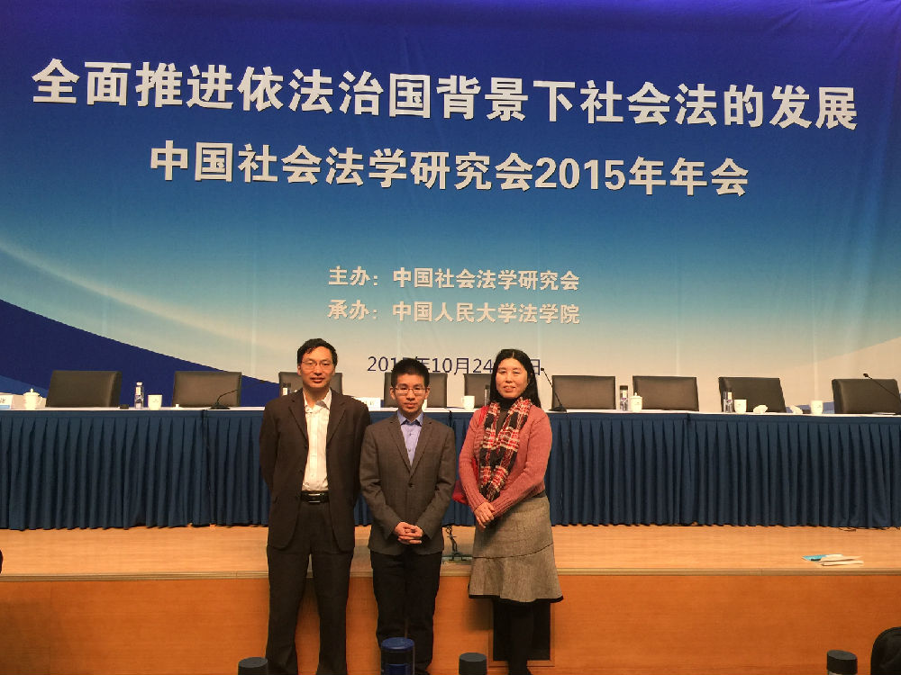 2015年10月24-25日,社会法研究所教师赵红梅、金英杰、胡彩霄、赵廉慧、杨飞、张春丽等参加了在中国人民大学举办的中国社会法学研究会2015年年会。