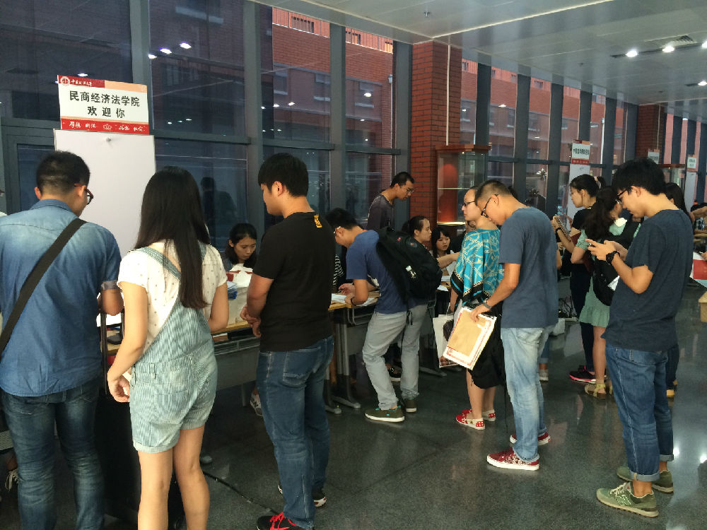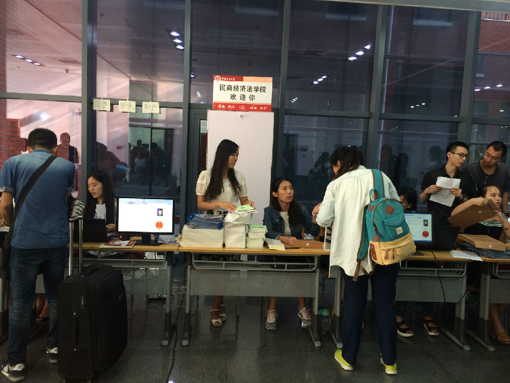 研究生工作办公室老师、新生辅导员以及研究生二年级的20余名迎新志愿者齐集综合科研楼一层大厅,做好了迎新工作准备。