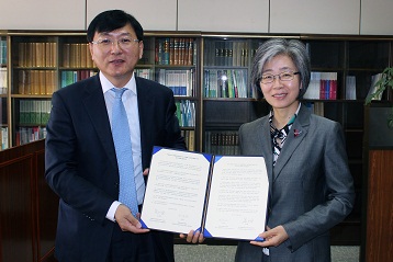 韩国法中心吴日焕主任在10月中旬参加韩国大法院举办的国际法律研讨会期间访问韩国大法院的法院图书馆,与韩国法院图书馆馆长赵京兰法官(韩国高等法院院长级)会面,并代表韩国法研究中心与韩国法院图书馆签署图书资料交流协议。韩国法院图书馆表示,本协议为韩国法院图书馆第一次与外国大学的研究中心(或研究所)签署的图书资料交流协议,并承诺每年在预算允许范围之内将韩国法院图书馆出版的法律书籍、刊物及其他司法资料赠给我校韩国法研究中心资料室,以支援我校韩国法研究中心的韩国法研究和中韩比较法研究事业的发展,为中韩法学交流做出贡献。