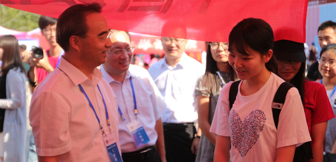 分党委书记王洪松也密切地关注迎新工作的进展情况,在展台前与迎新工作者交流指导。16级辅导员苑阳、孙沁老师为迎新工作也做了充分的准备,从分发新生材料、办理入住手续,到设计温馨提示、加强安全教育都安排的井井有条