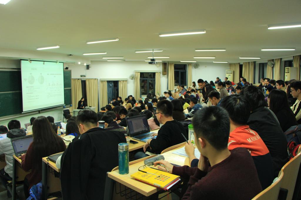 “你炒过股吗?”王丽抛出的这一问题吸引了同学们的注意,巧妙地过渡到了本期讲座的内容。首先,她为同学们简要介绍了我国两大证券交易所——上海证券交易所和深圳证券交易所的性质与分工,并列举了我国相关的一些法律法规,让同学们对我国证券交易所现况以及其性质和功能有了初步的了解。之后,王丽结合她的工作实际与自身体验,概括性地介绍了在证券交易中进行市场监察的工作内容与步骤,说明了证券交易所与证监会在监管问题上的联系与区别以及它们的具体分工,并改变了大家对市场监察工作的误解——市场监察工作就是盯着交易曲线与荧屏不动。同时,她以现实中的案例,具体展示了作为自律组织的证券交易所如何在证券交易中实施自律监管,辅以详实图表资料和具体的实务,帮助同学们对证券交易所的自律监管实务进行了更深入的了解。