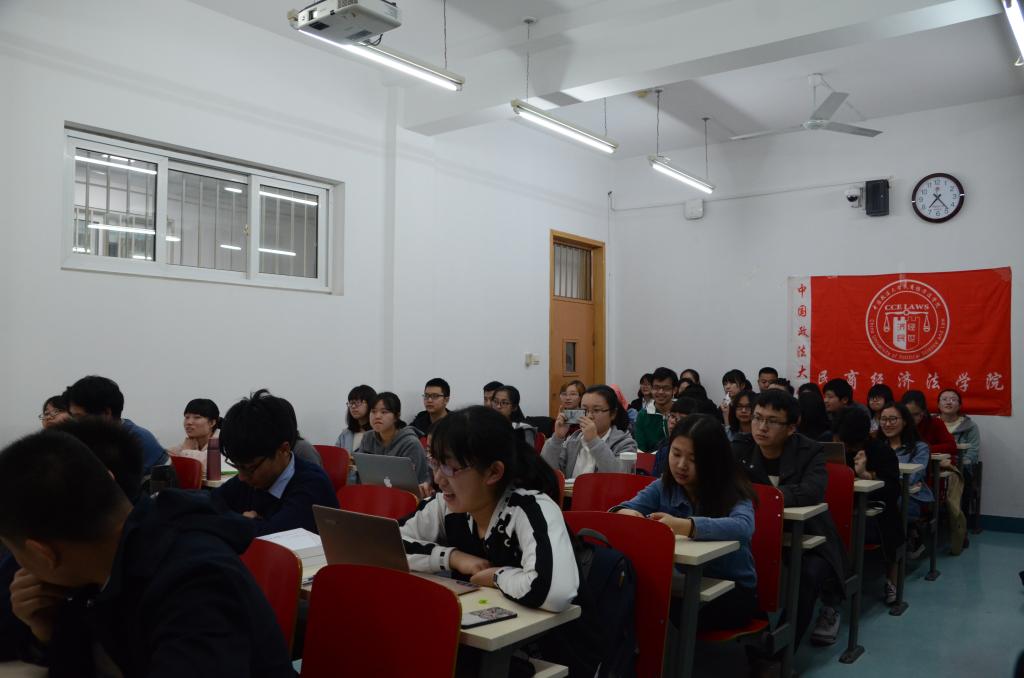 活动于下午七点开始,但因为对老师的喜爱和对这本书的兴趣,在下午六点半时教室里便没有了空位,有不少同学是搬着板凳坐在过道中。七点活动准时开始,翟远见老师没有站在讲台上与同学们交流,而是选择了坐在同学中间,瞬间拉近了与同学的距离。在活动一开始,老师首先说明了他推荐《古代法》作为本次读书沙龙书目的理由,第一是它很经典,里面有很多流传很广的法思想的名言;第二,它的篇幅不太长,对于刚刚上大学的法学学生来说,读这些小部头的书,恰恰比读太大部头的书,更使人受益;第三,它是历史与制度的结合。老师认为法ag亚游官网