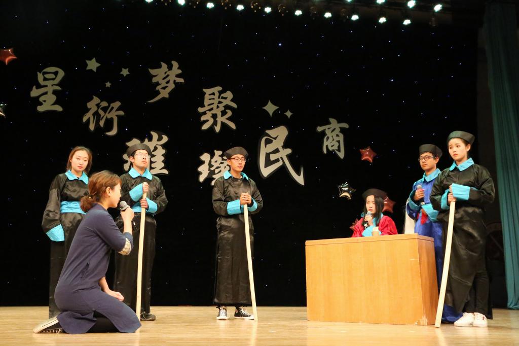 精致的道具,用心的演绎,九班的同学们为我们带来了一出精彩绝伦的话剧表演。亦古亦今,只望冤情从此禁;遵法执法,惟愿恶人终伏法。古典名著与现代因素的完美融合,让人耳目一新;恩情,利益与法律的碰撞,又让人不禁掩卷沉思。