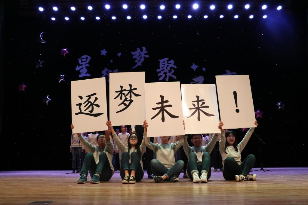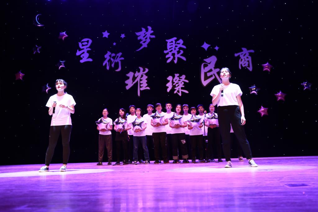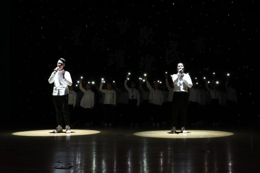 多次的排练,长期的磨合,终于,造就了这场精彩的演绎。巧妙的相声串词、优美的舞蹈、嘹亮的合唱、整齐的朗诵,环环相扣,妙趣横生。五班正是这样一个集体,既尊重个性,又讲究团结一致,既活泼有趣,又不失严肃认真。我们相互理解,相互关爱,一起仰望星空,相信未来!
