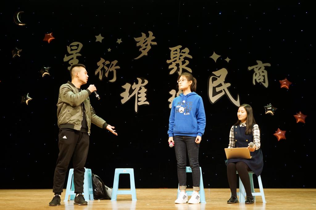 四班的同学采用话剧的表演形式,以妙趣横生,而又极富感染力的方式就大学生在社团和学习之间如何选择的问题进行了自己的思考。表演途中金句频频,台下的观众不时爆发出大笑来。演员们演技精湛,以很贴切生活,极为自然的表演方式得到了大家的赞同。话剧构思奇特,以游戏的方式为我们讲述了多种不同的选择。节目最后的朗读,令人深思。