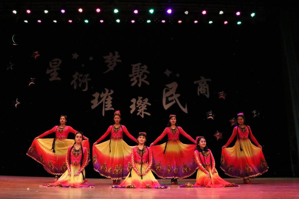 来自少数民族的同学同样在这次晚会中展示了各自民族的风采,维吾尔族,羌族,哈萨克族,彝族,朝鲜族,藏族等同学用他们的才艺体现了中华民族的相亲相爱,他们富有民族特色的动人歌舞带我们领略了不一样的风情。她们曳步窈窕,舞姿曼妙;他们风度翩翩,身姿矫健。她们歌喉婉转,如黄莺出谷;他们音域辽阔,像大河奔流。各个民族的同学们在法大欢聚一堂,相亲相爱,共同创造美好的明天。