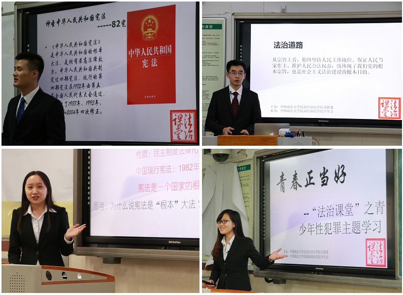 教学文化,依托现有法学教育资源,紧跟中国法治教育的建设步伐。在教学方式上,法治课堂具备的新颖性和独特性,是区别于其他一般的普法课堂最具魅力和特色的地方:通过法学哲理的传授,让学生善于思维,善用逻辑;通过法治文化的传播,让学生明辨法史流变,塑造法治人格;在具体的律令条文的介绍中,让学生从理论转向现实,从平面走到立体。