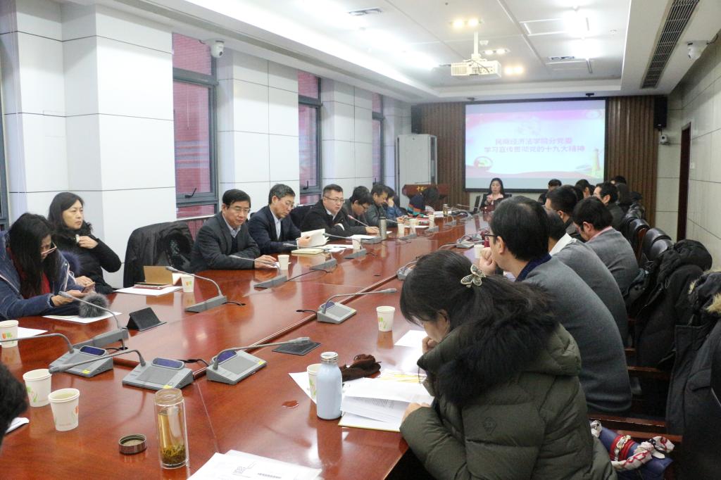 王洪松在总结发言中指出,学习好贯彻好党的十九大精神,是当前和今后一个时期首要的政治任务。全院教师要同以习近平同志为核心的党中央保持高度一致,牢固树立“四个意识”,自觉用习近平新时代中国特色社会主义思想武装头脑,切实提高政治觉悟。各基层党支部、研究所要共同推进党建一体化建设,开展好深入学习宣传贯彻党的十九大精神相关活动,将学习宣传贯彻党的十九大精神落到实处,切实做到将学习宣传党的十九大精神与贯彻习近平总书记法大考察讲话精神相结合、与落实全国思想政治工作会议精神相结合、与落实学校党委第八次党代会精神相结合,与推动学校“双一流”法学学科建设相结合、与推动ag亚游官网