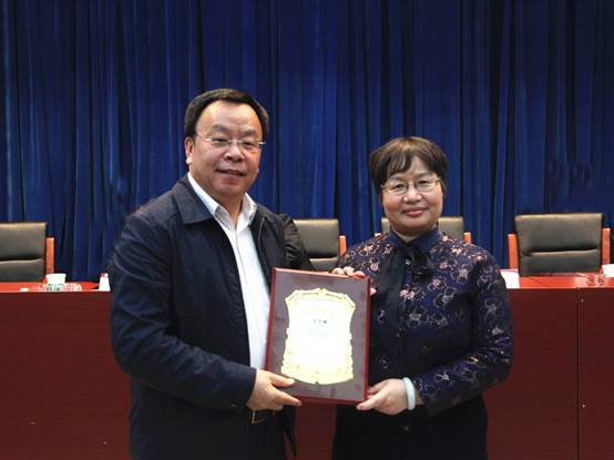 时建中副校长为吕忠梅教授颁发“名家大讲堂”报告人纪念证书